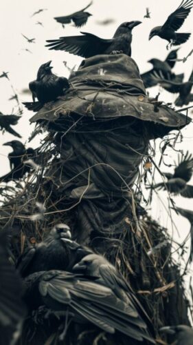 Несколько воронов собралось рядом с этой фигурой. Два ворона сели ей на плечи и стали орать на старика. Следом за ними присоединились и другие. В лесу, с деревьев, на самой поляне, раздалось отчётливое: -«Карр!»