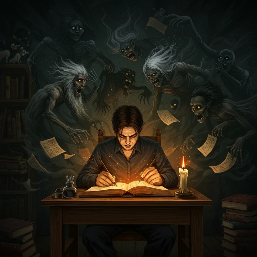- Сосредоточьтесь на чувстве страха и ожидания. Представьте, как он шагает по темному коридору к вашей спальне.