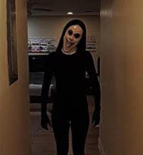Длинное худо тело, кожа словно натянута на кости выпирающие из под нее, длинные зассаленные волосы торчавшие пучками из макушки, отвратительнейший рот, рот словно набитый зубами! Да да, набитый ими, иную характеристику их расположения дать я не могу, они словно напичканы туда в несколько кривых рядов. Зубы желтоватого оттенка. На них запеклась кровь словно брызги краски случайно попавшие на кисточку. Меж щелей в зубах торчали гнилые куски плоти которые не понятно были дёснами или же чьими то останками, у него отсутствовал нос и был взгляд который будет мне сниться в кошмарах! Его темные зрачки почти полностью закрывавшие белок глаз судорожно бегали повсюду в надежде увидеть что либо вокруг себя. Существо село на корточки закрыв уши и разявив пасть под углом примерно 100° начало дико визжать разрывая пространство своим криком.