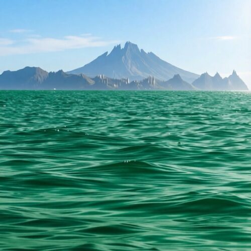 Утром озеро открылось им во всей своей пугающей красоте. Вода была неестественно зелёной — яркая, изумрудная, как растопленный нефрит, она сверкала под лучами восходящего солнца, переливаясь от бледно-зелёного до почти чёрного у горизонта. Берега — пустынные, каменистые, покрытые серым пеплом и редкими пучками сухой травы.