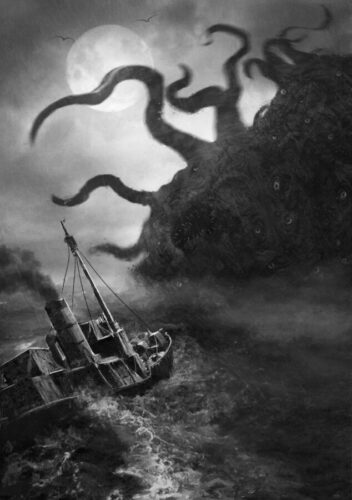 Тогда в моей голове пробежали чуждые воспоминания, совсем похожие на мучащий меня кошмар. Я вспомнил чья эта золотая статуэтка. Я вспомнил что это за хаотично разбросанные человеческие кости. Я вспомнил что это за корабль, и как он там оказался. И в конце концов я вспомнил что это за ужасный скелет, давным давно заросший зелеными водорослями.