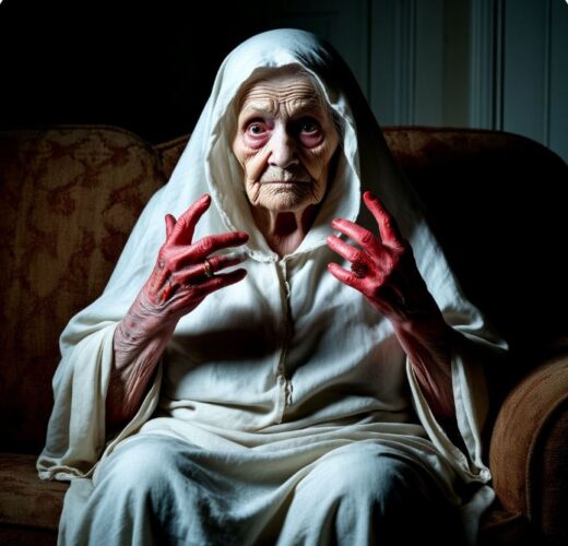Когда моя любопытная вошла к ней, символически «я же постучалась» и открыла дверь… При свете луны на диване, в самом углу, сидела в белой ночнушке лохматая страшная старуха с окровавленными скрюченными пальцами…